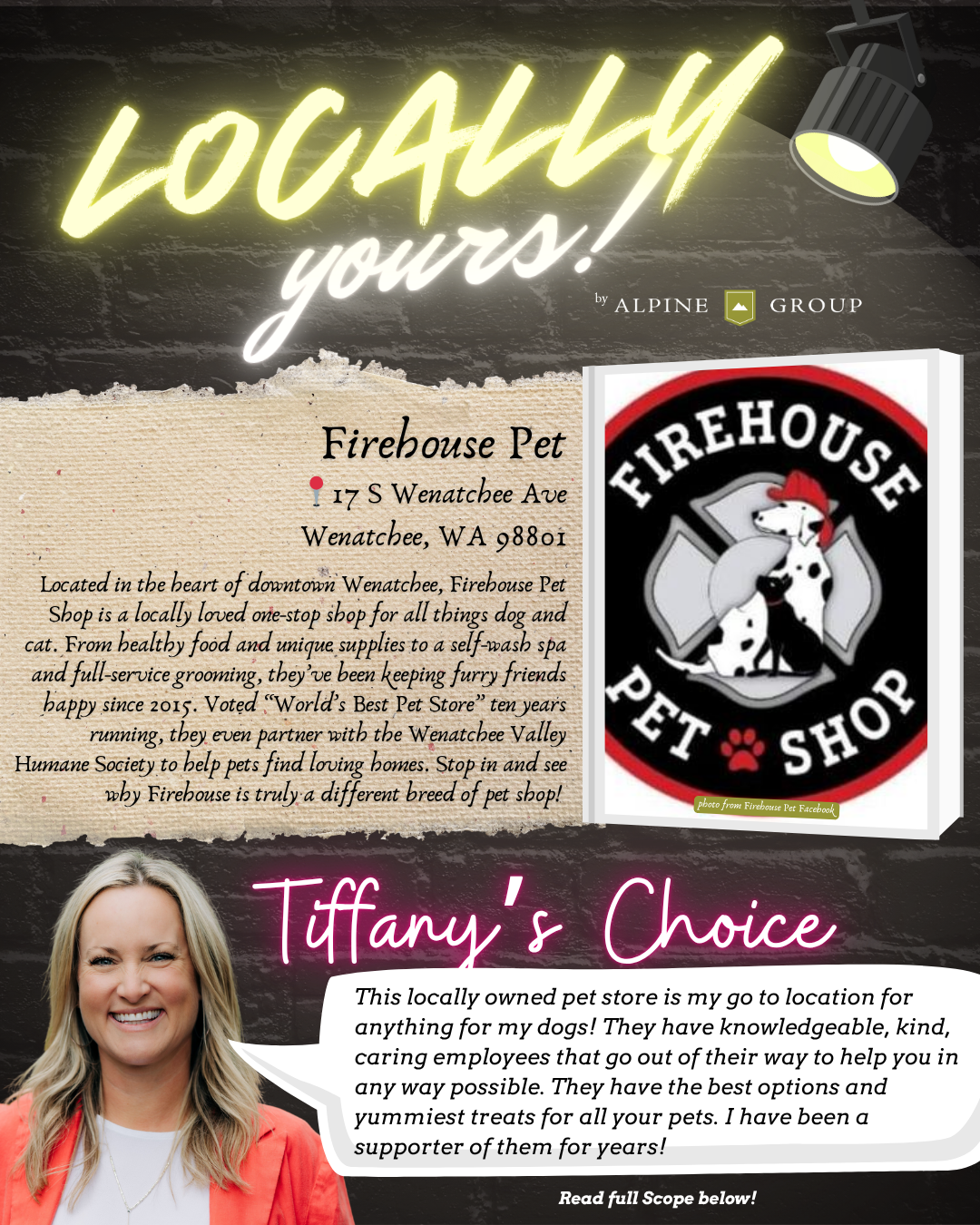 This month, we're shining a light on a local favorite for pet lovers—Firehouse Pet Shop in downtown Wenatchee! This recommendation comes from our Alpine Group agent, Tiffany, who shared: