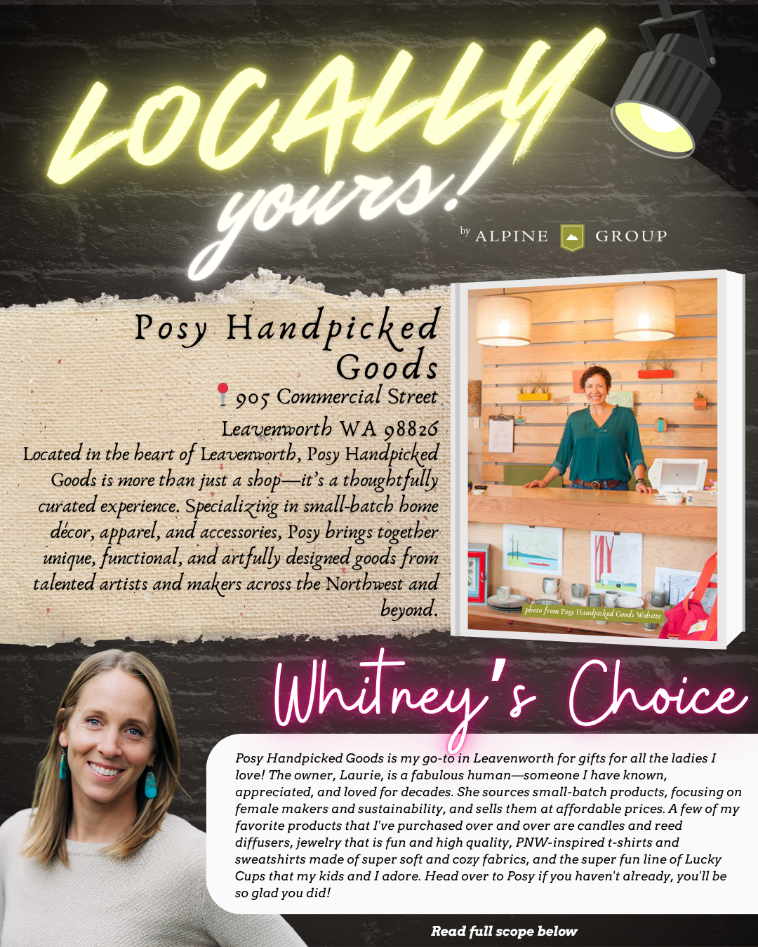 This month, we’re highlighting a charming lifestyle shop in Leavenworth—Posy Handpicked Goods! This recommendation comes from our Alpine Group agent, Whitney, who shared:
